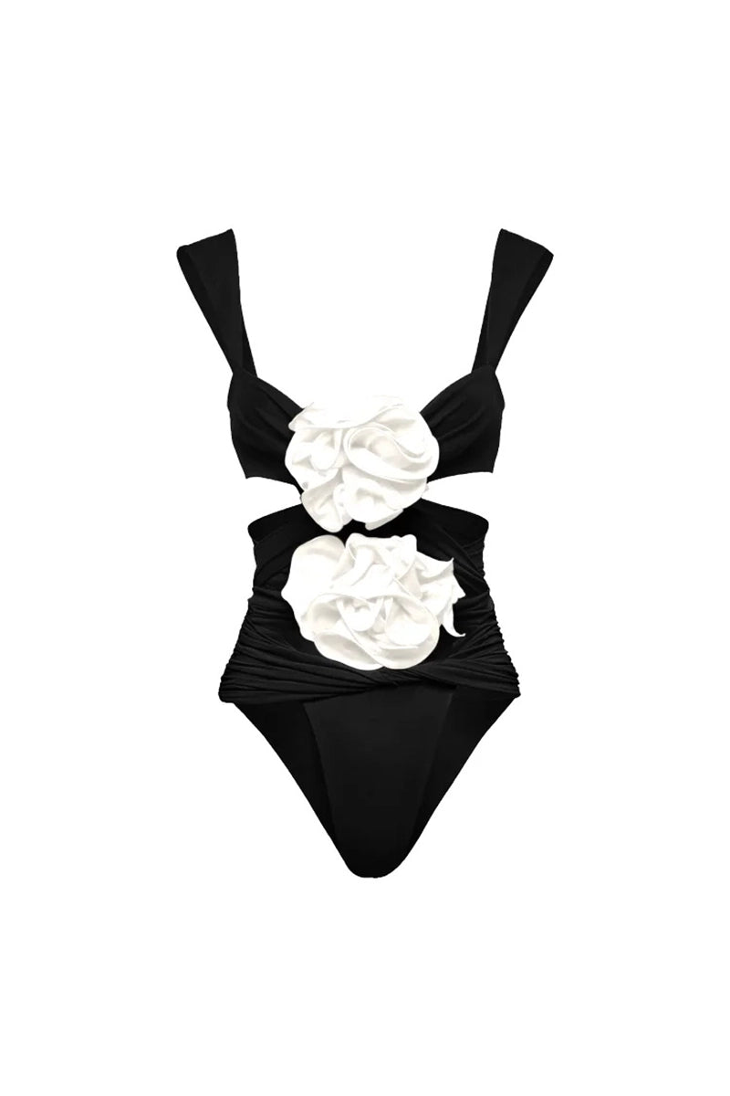 3D Floral Black Swimsuit Set
