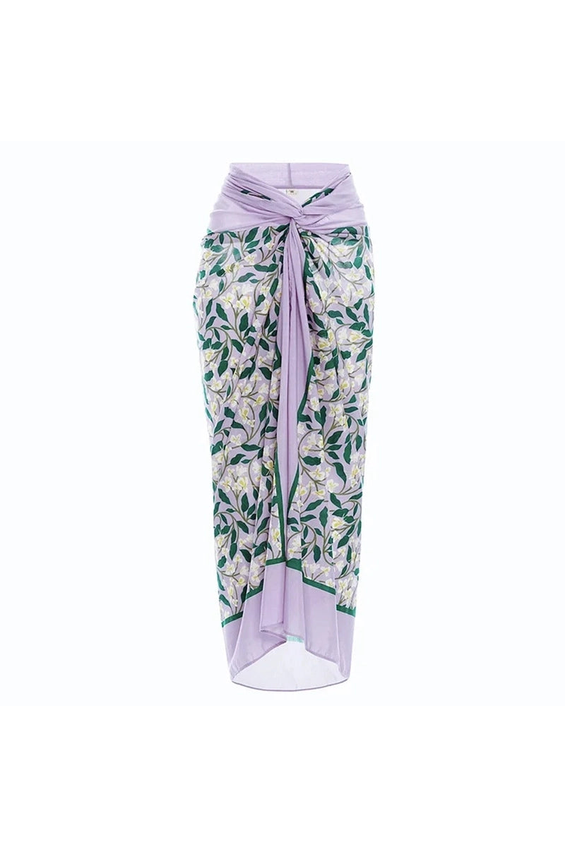 This purple 3D floral halter backless swimsuit and wrap skirt set captures the essence of bold elegance with a romantic twist. The swimsuit features sculpted three-dimensional floral appliqués that add texture and femininity, while the halter neckline and open back highlight the shoulders and create a flattering silhouette. Crafted from smooth stretch fabric, it offers comfort and shape retention. The matching wrap skirt adds effortless coverage and styling flexibility, making this set a standout for sunny escapes.